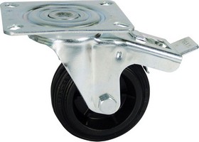 Adecuado para cargas pesadas. La carcasa de goma no es resistente a las grasas, aceites, cloruros y disolventes. Herraje de acero galvanizado con placa giratoria El freno bloquea la rueda y la placa giratoria